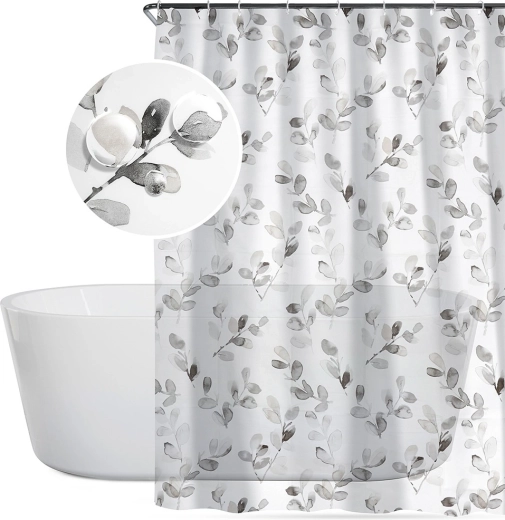 Elegantný sprchový záves s rozmermi 180 × 180 cm s jemným rastlinným motívom a 12 háčikmi v balení zaistí súkromie a ochranu proti striekajúcej vode. Vyrobený z ekologického PEVA, je bez škodlivých látok, ľahký, ľahko sa udržiava a hodí sa do väčšiny vaní a sprchových kútov.
