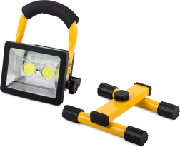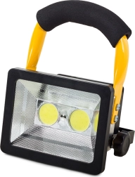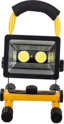 krytím IP65 zabezpečuje spoľahlivé použitie v interiéri aj exteriéri, a to aj v zhoršených podmienkach.Pohodlné prenášanie umožní mäkká polstrovaná rukoväť a stabilný stojan s možnosťou otáčania o 360° a nastavenia uhla. Reflektor ponúka 3 režimy svietenia (1 COB, 2 COB, stroboskop) a dlhú životnosť LED až 50 000 hodín.