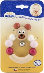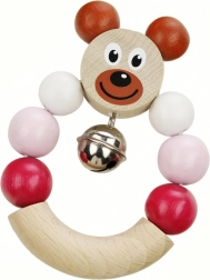 Roztomilá drevená hrkálka s medvedíkom v ružovej farbe poteší každé bábätko. Integrovaná rolnička jemne cinká, hrkálka je ľahučká a vďaka kompaktným rozmerom 7 × 9 cm sa skvele drží v malých rúčkach. Výrobok spĺňa prísne požiadavky EÚ na bezpečnosť hračiek a pýši sa certifikátom Bezpečné hračky.