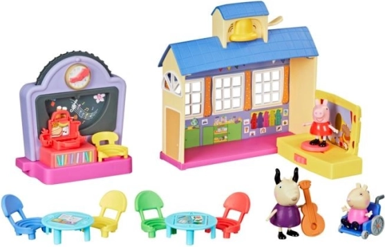 Herná sada Prasiatko Peppa Školské ihrisko umožňuje deťom zažiť kreatívnu a vzdelávaciu zábavu. Ponúka postavičky a príslušenstvo, ktoré inšpirujú k rozprávaniu príbehov a rozvoju imaginatívnej hry.