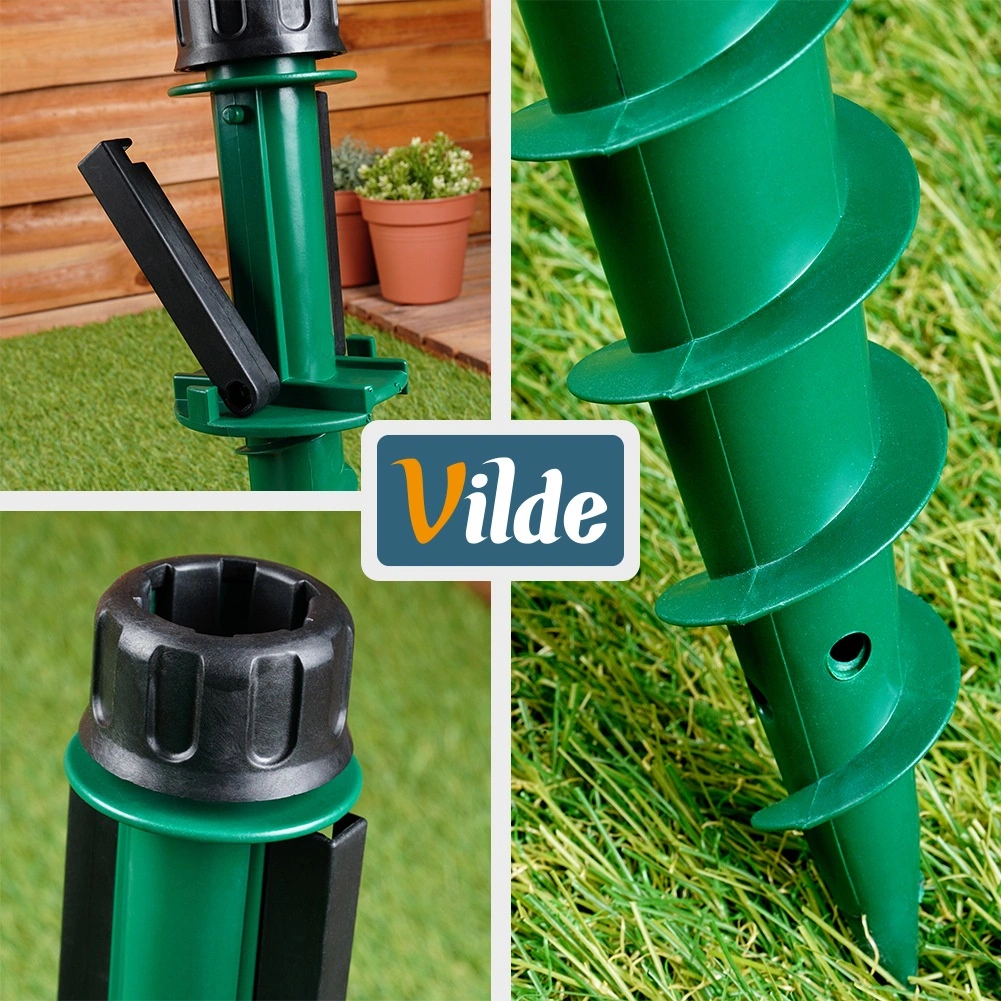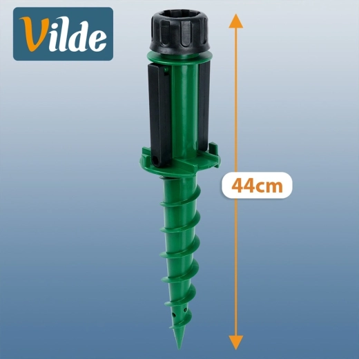 Hľadáte spoľahlivý spôsob, ako bezpečne ukotviť slnečník v tráve, na pláži alebo v kempe? Tento skrutkovací stojan Vilde s dĺžkou 44 cm sa ľahko zavrtá do zeme a vďaka špirálovej konštrukcii pevne drží. Ľahké, ale pevné prevedenie z odolného plastu uľahčí prenášanie aj rýchlu inštaláciu.