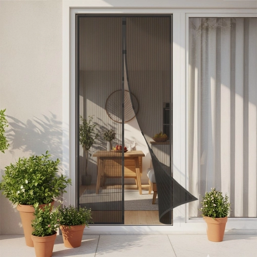Užite si vetranie bez kompromisov. Dverová sieťka proti hmyzu sa skladá z dvoch panelov (každý cca 50 cm), ktoré sa uprostred ľahko a spoľahlivo zatvárajú pomocou silných magnetov. Ochráni váš domov pred komármi a muchami, bez toho aby obmedzovala výhľad alebo prienik svetla.