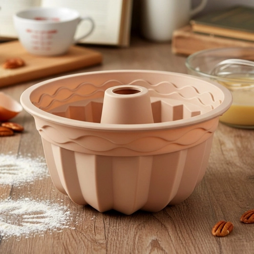 S touto béžovou silikónovou formou na bábovku pripravíte dokonale prepečené dezerty s elegantnými reliéfnymi drážkami. Flexibilný silikón uľahčuje vybratie bez potreby vymasťovania tukom či vysypávania múkou a zabezpečuje čisté tvary bez trhania.