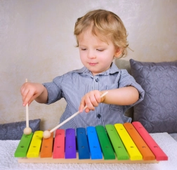 Predstavujeme farebný drevený xylofón značky Bino, ktorý je ideálny pre deti vďaka svojmu kvalitnému spracovaniu. S 12 tónmi a dodanými drevenými paličkami si vaše dieťa môže vydávať správne tóny, vďaka tomu, že jednotlivé klapky xylofónu sú mierne nakrojené zo spodnej strany: