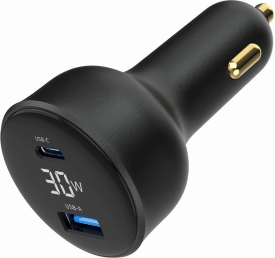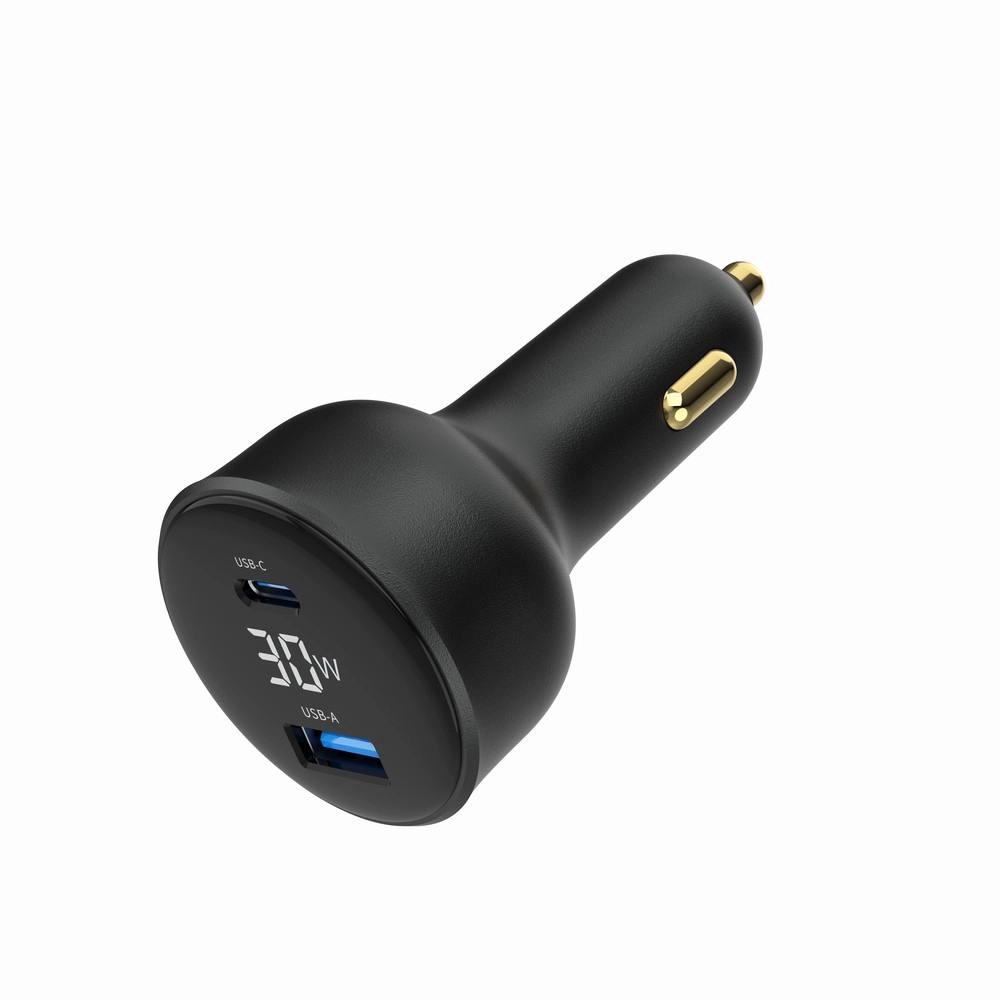 Rýchla auto adaptér nabíjačka 30 W je ideálny spoločník na cesty, dochádzanie aj krátke zastávky. Vďaka USB‑C Power Delivery (PD) 30 W doplní energiu smartfónom s Androidom aj iPhonom rýchlo a efektívne, zatiaľ čo porty USB‑A s QC 3.0 sa postarajú o ostatné zariadenia. Integrovaný LCD displej prehľadne zobrazuje priebeh nabíjania.