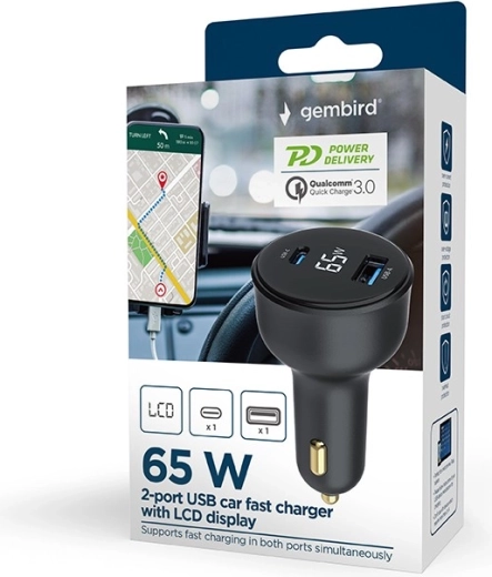 Výkonná autonabíjačka s celkovým výkonom 65 W rýchlo dobije notebook, smartfón aj iPhone s USB‑C. Ponúka 2× USB‑A + USB‑C (Power Delivery), podporu rýchleho nabíjania na oboch portoch a praktický LCD displej so stavom nabíjania. Integrované inteligentné ochrany strážia preťaženie, prepätie aj skrat.