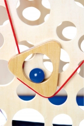 Látkový kôš medzi stenami zachytí spadnuté guľôčky, takže nič neunikne. Plynulé vedenie šnúrok je pre deti jednoduché a podporuje trpezlivosť.