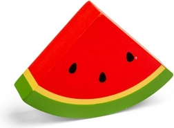 Živé farby a detaily melóna motivujú deti k uchopeniu a k rolovým hrám v kuchynke či obchode.