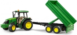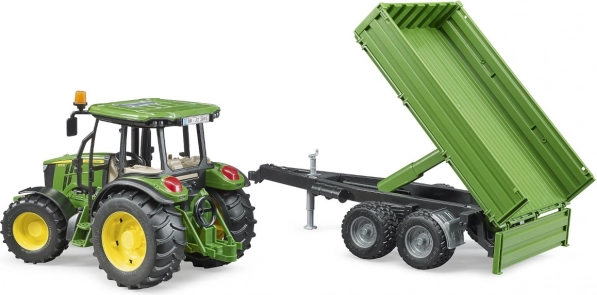Objavte detailne spracovaný model traktora JOHN DEERE s valníkom v mierke 1:16, ktorý nadchne malých farmárov aj zberateľov. Ponúka množstvo funkčných prvkov – odnímateľné predné závažie, držiak pre čelný nakladač, predný aj zadný záves, profilované pneumatiky a riadenie predĺženým volantom v streche. Valník má sklopné bočnice, sklápaciu plošinu a stojí samostatne vďaka opore. Vyrobené z kvalitného ABS v Nemecku.