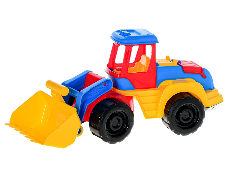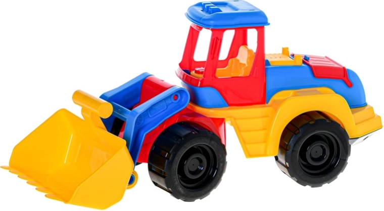Farebný plastový traktor nakladač s dĺžkou 45 cm poteší malých staviteľov doma aj vonku. Má veľkú funkčnú lyžicu, odolné kolesá a je ideálny na hru v piesku, na záhrade aj v detskej izbe. Ľahký, ale pevný materiál zvládne každodenné dobrodružstvá. Vhodné pre deti od 3 rokov.