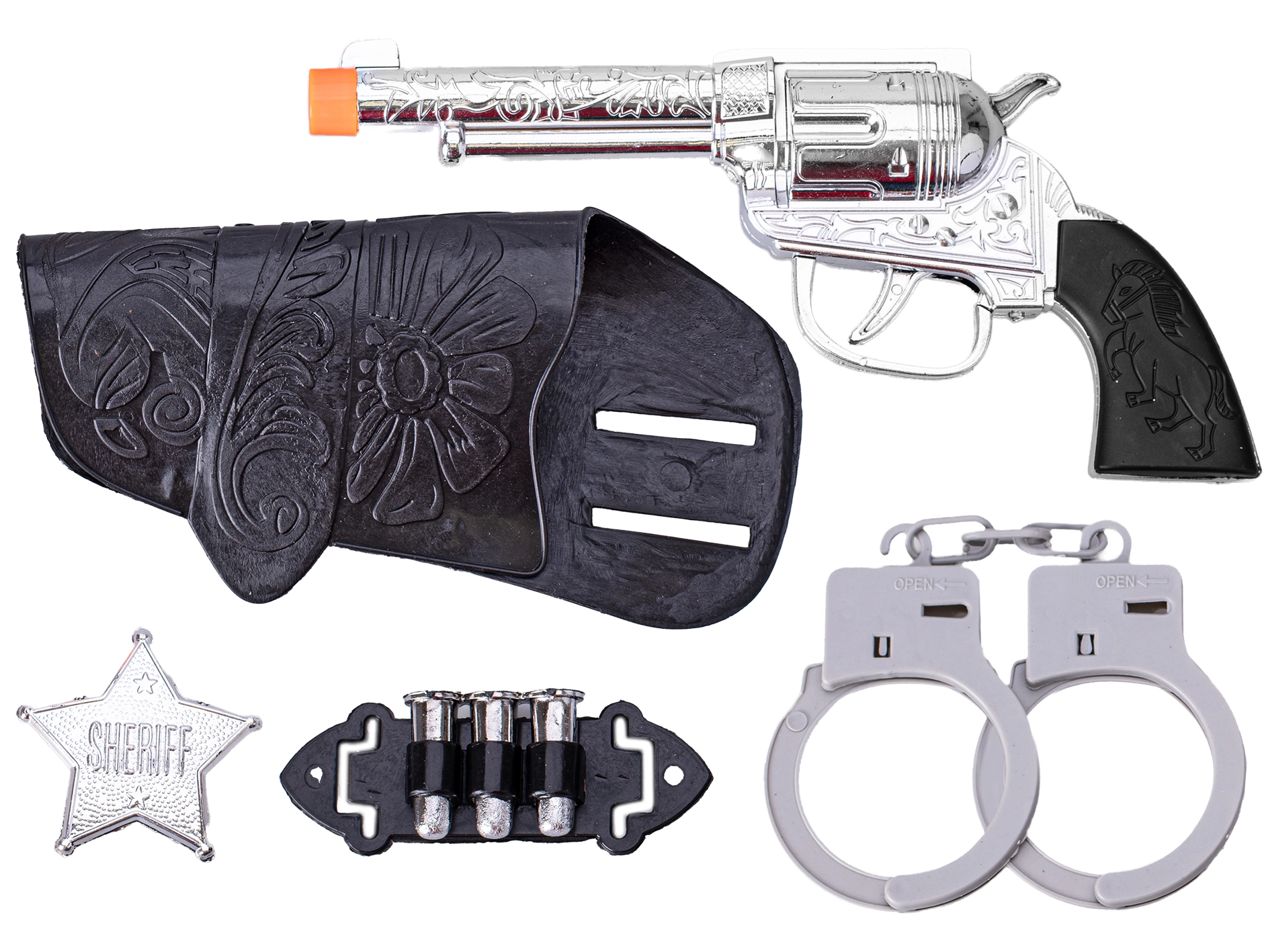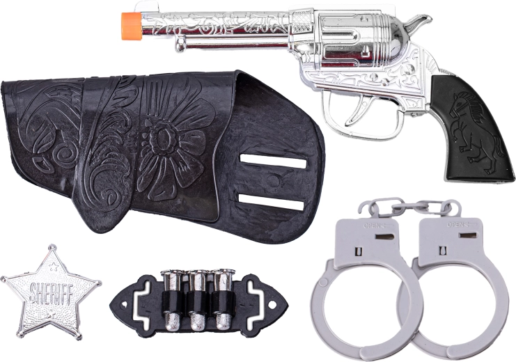 Staňte sa šerifom na Divokom západe! Kompletný westernový set s klapajúcim koltom ponúka deťom všetko, čo potrebujú k napínavým kovbojským príbehom. Ľahký a odolný plast zaisťuje pohodlné a bezpečné používanie aj pri dlhšej hre.