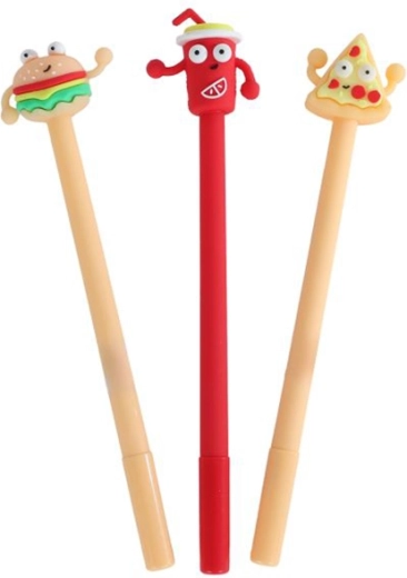 Každé pero je zakončené dekoráciou v tvare hranoliek, pizze, hamburgera alebo nápoja – ideálne pre tých, ktorí chcú oživiť svoje školské a kancelárske potreby alebo hľadajú nápaditý darček. Balenie po 36 kusoch je skvelé pre školy, kolektívy či ako drobné odmeny.