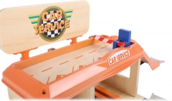 Táto drevená hračka je ideálna pre malých automobilových nadšencov. Autoservis a čerpacia stanica prinášajú zábavu na dvoch poschodiach a ponúkajú tak ešte viac priestoru na objavovanie. Deti si zamilujú realistické dizajnové prvky vrátane rampy a parkoviska zabezpečeného závorou.
