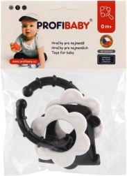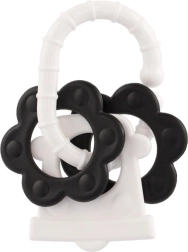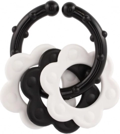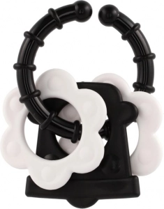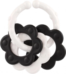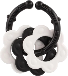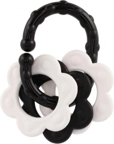 Objavte hryzadlá navrhnuté špeciálne pre najmenších – kontrastné čiernobiele prevedenie priťahuje pozornosť bábätka a pomáha stimulovať vizuálne vnímanie. Vďaka praktickému úchytu sa hryzadlo dobre drží malými rúčkami a hrkálka poskytuje jemnú zvukovú stimuláciu.