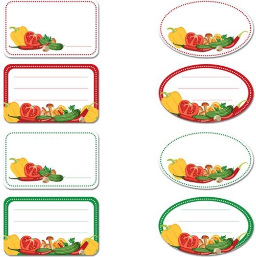 Ozdobné štítky TORO na poháre so zeleninou a ďalšími zaváraninami uľahčia označovanie obsahu aj dátumu výroby. Vďaka výraznému a pritom vkusnému dizajnu budete mať v špajzi, chladničke aj pivnici vždy dokonalý prehľad. Štítky sú jednorazové, prehľadné a pripravené na okamžité použitie.