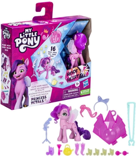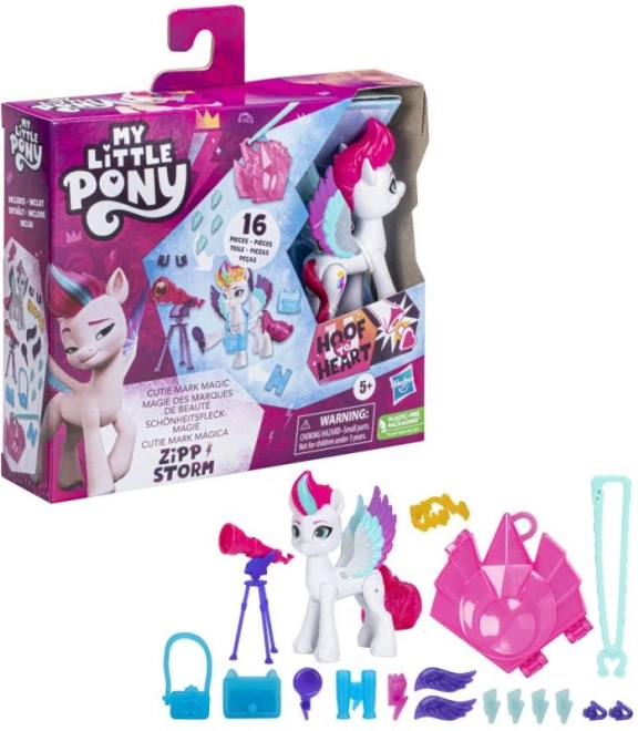 Objavte kúzlo sveta My Little Pony s hravou sadou Kúzelný Cutie Mark! V balení nájdete rozkošného 8 cm poníka s pohyblivými pózami, kľúčenku jednoty na pripínanie príveskov a doplnkov a tiež vkladacie Cutie Marky, ktoré dodajú poníkom ich jedinečnú silu. Vďaka funkcii „Kopytko na srdce“ a možnosti zdobiť hrivu príveskami do vlasov si deti užijú množstvo fantazijnej zábavy doma aj na cestách.