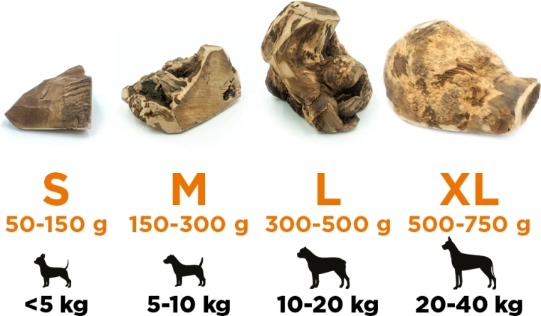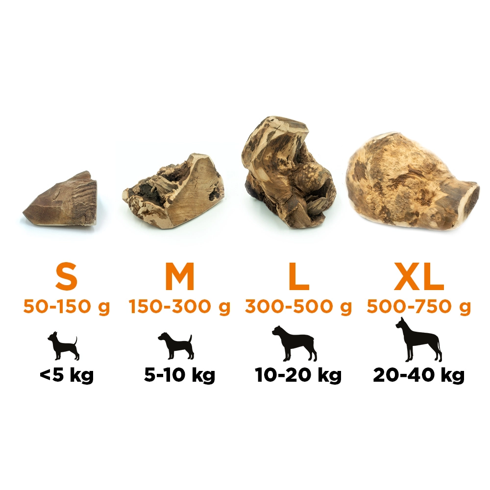 Masívny koreň vresu s nepravidelnou kresbou je mimoriadne odolný a poskytne psom dlhé hodiny žuvania bez štiepenia.