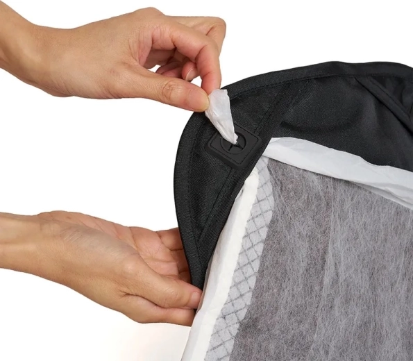 Extra veľká vanička so sieťovaným okienkom pre neustále prúdenie vzduchu a skvelý výhľad. Striešku otvoríte po aj proti smeru jazdy, uzatvorenie istí patentovaný klip.