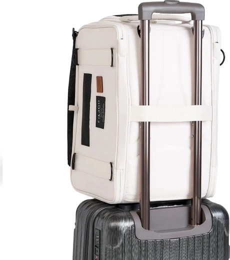 Na letecké cestovanie aj každodenné presuny: kompaktné rozmery 43 × 27 × 28 cm zodpovedajú požiadavkám väčšiny aeroliniek na umiestnenie pod sedadlo. Odnímateľné popruhy umožnia nosiť tašku pohodlne cez plece alebo ako batoh a mať tak voľné ruky. Vo vnútri nechýba bezpečnostná spona proti nechcenému vyskočeniu a mäkké polstrované dno pre pokojný odpočinok.