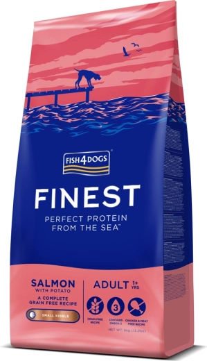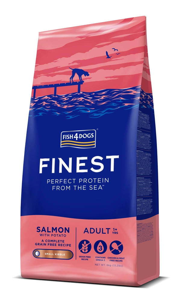 Fish4Dogs Finest s lososom a zemiakmi sú kompletné a vyvážené granuly pre malé dospelé psy. Jemná receptúra z nórskeho lososa poskytuje vysoko stráviteľné bielkoviny a vysoký obsah omega‑3, ktoré podporujú kožu, srsť, vitalitu a celkovú kondíciu. Zemiaky a hrachový škrob slúžia ako šetrné zdroje sacharidov bez záťaže obilninami.