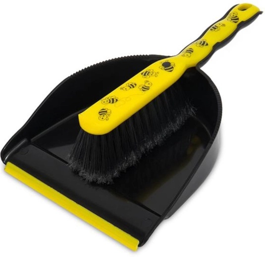Praktická sada na každodenné upratovanie – metlička s lopatkou s motívom Včielky. Ľahká, skladná a jednoducho ovládateľná pomôcka, ktorá rýchlo odstráni omrvinky, prach aj nečistoty z podláh aj pracovných plôch.