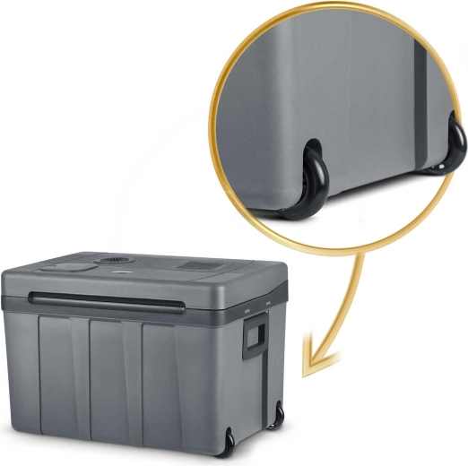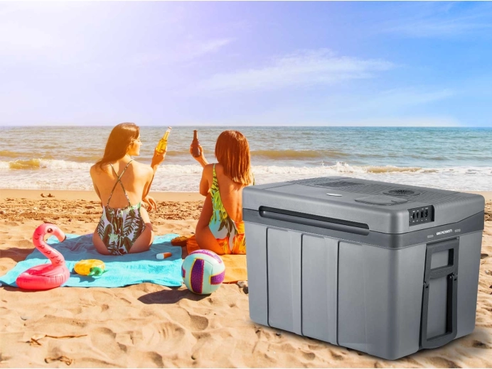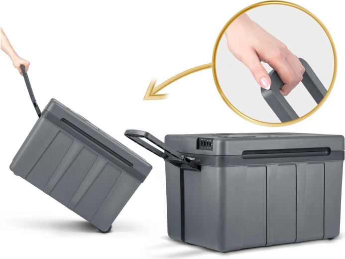 Chladnička dokáže chladiť až o 15 °C pod okolité prostredie a v režime ohrevu udržať pokrmy až na +65 °C – ideálne pre teplé jedlo na cestách. Sklápacia rukoväť, integrované kolieska a pevné madlá uľahčujú prenášanie. Po odpojení od prúdu si udrží teplotu až 3 hodiny, takže sa hodí na pláž, piknik aj k ohňu.