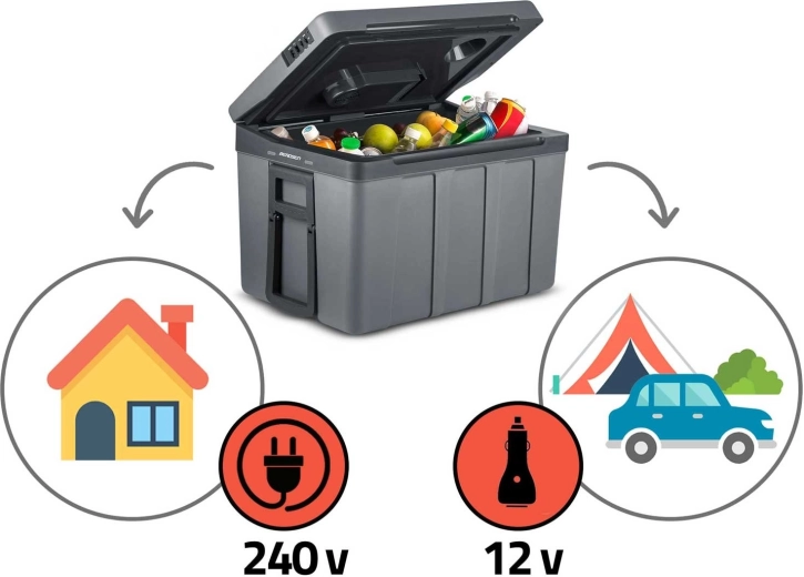 Táto priestranná 50 l termoelektrická chladnička s funkciou ohrevu je ideálny parťák na výlety, kempovanie aj dlhé jazdy autom. Vďaka dvojitým stenám a kvalitnej penovej izolácii udržiava potraviny a nápoje dlhšie svieže, zatiaľ čo dva ventilátory zabezpečujú rovnomerné prúdenie chladu v celom priestore. Praktické napájanie z 12 V zásuvky v aute aj zo siete 100–240 V umožní spoľahlivú prevádzku doma aj na cestách.