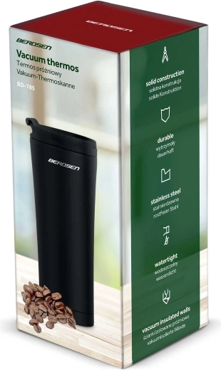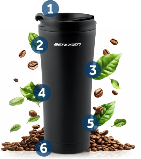 Ľahký a odolný termopohár BERDSEN 470 ml z nehrdzavejúcej ocele udrží nápoje horúce až 12 hodín a studené až 24 hodín. Má dvojstennú vákuovú izoláciu, tesniace viečko s poistkou proti rozliatiu a ergonomický tvar, ktorý skvele padne do ruky aj do držiaka v aute. Ideálny na cestovanie, šport aj do kancelárie.