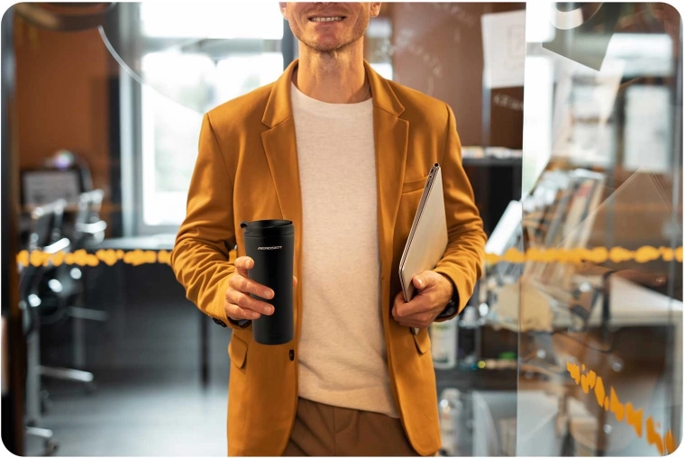 Nehdzavejúca oceľ, matný povrch a ergonomický tvar pre istý úchop. Ideálny pre vodičov aj do kancelárie – vždy po ruke.