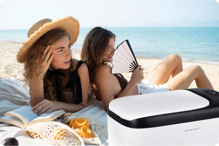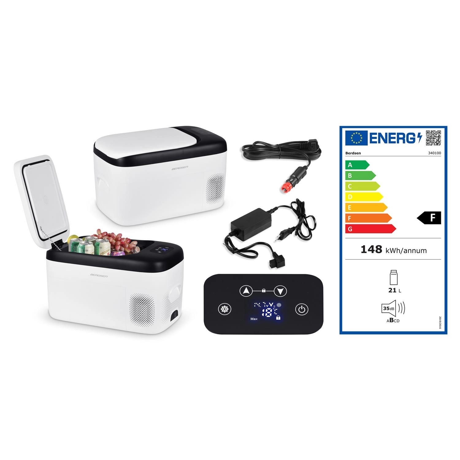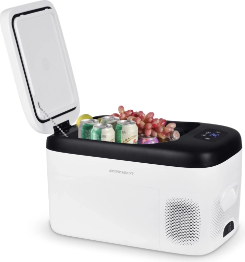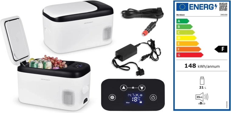 Kompaktná kompresorová autochladnička BERDSEN Icemax 401 s objemom 21 l je ideálna na pláž, kemp aj do karavanu. Ponúka chladenie aj ohrev v rozsahu -20 °C až +20 °C, dva režimy ECO/MAX, tichú prevádzku do 45 dB a digitálne dotykové ovládanie so zámkom Child Lock. Napájate ju z 12/24 V v aute aj z 100–240 V v sieti, vrátane ochrany batérie a kvalitnej izolácie pre stálu teplotu.