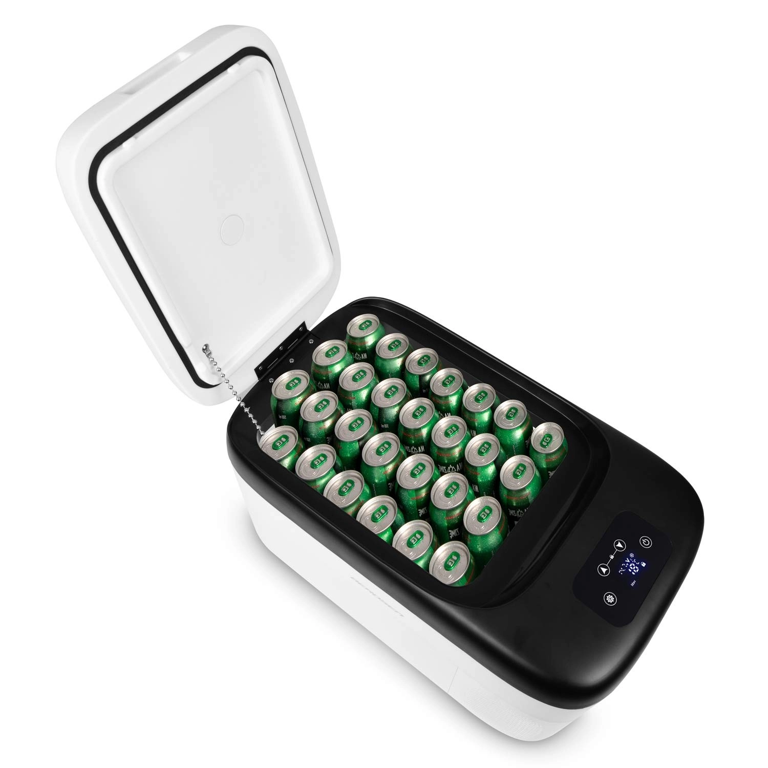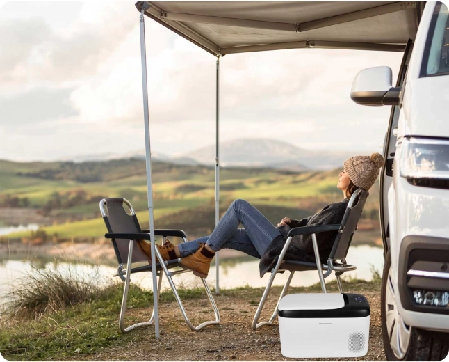 Chladnička je vybavená dotykovým panelom s prehľadným LED displejom, funkciou Child Lock, 3-stupňovou ochranou automobilovej batérie a dvojitým napájaním 12/24 V DC aj 100–240 V AC. Kvalitná penová izolácia pomáha držať nastavenú teplotu a tichý chod do 45 dB neruší odpočinok.