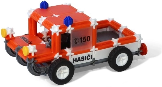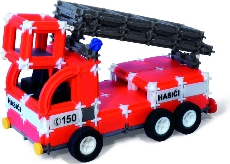 Postavte si hasičské vozidlo so zdvíhacou plošinou, veľkú cisternu s možnosťou otáčania aj veliteľské (technické) vozidlo. Nechýbajú ani tematické samolepky „HASIČI, RESCUE, FIRE“ a číslo tiesňovej linky 150, ktoré deťom pomôžu naučiť sa dôležité zásady bezpečnosti.