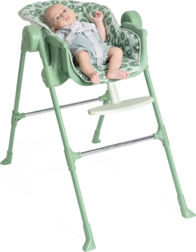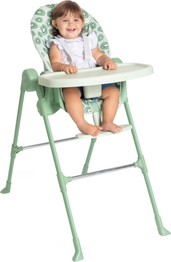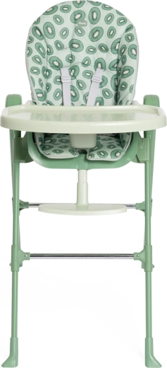 Bezpečné sedenie zaisťujú 5-bodové popruhy a stabilné, široko rozkročené nohy s výstuhami. Odnímateľný jedálenský tácek poskytuje praktický priestor na kŕmenie aj aktivity a poťah sa ľahko čistí. Nadčasový dizajn a svieži kiwi odtieň skvele zapadnú do každého interiéru.