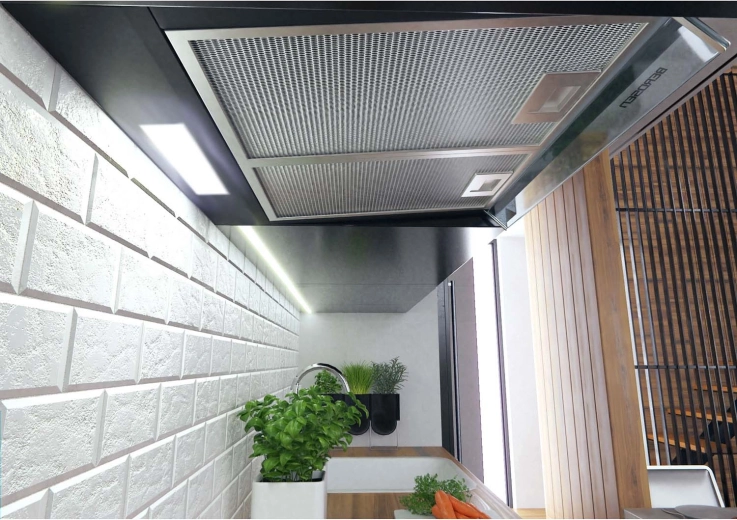 Vyberateľné 5-vrstvové hliníkové tukové filtre zachytia mastnotu a dajú sa ľahko vyčistiť. Na recirkuláciu je k dispozícii uhlíkový filter BERDSEN TYP-A (voliteľné príslušenstvo).