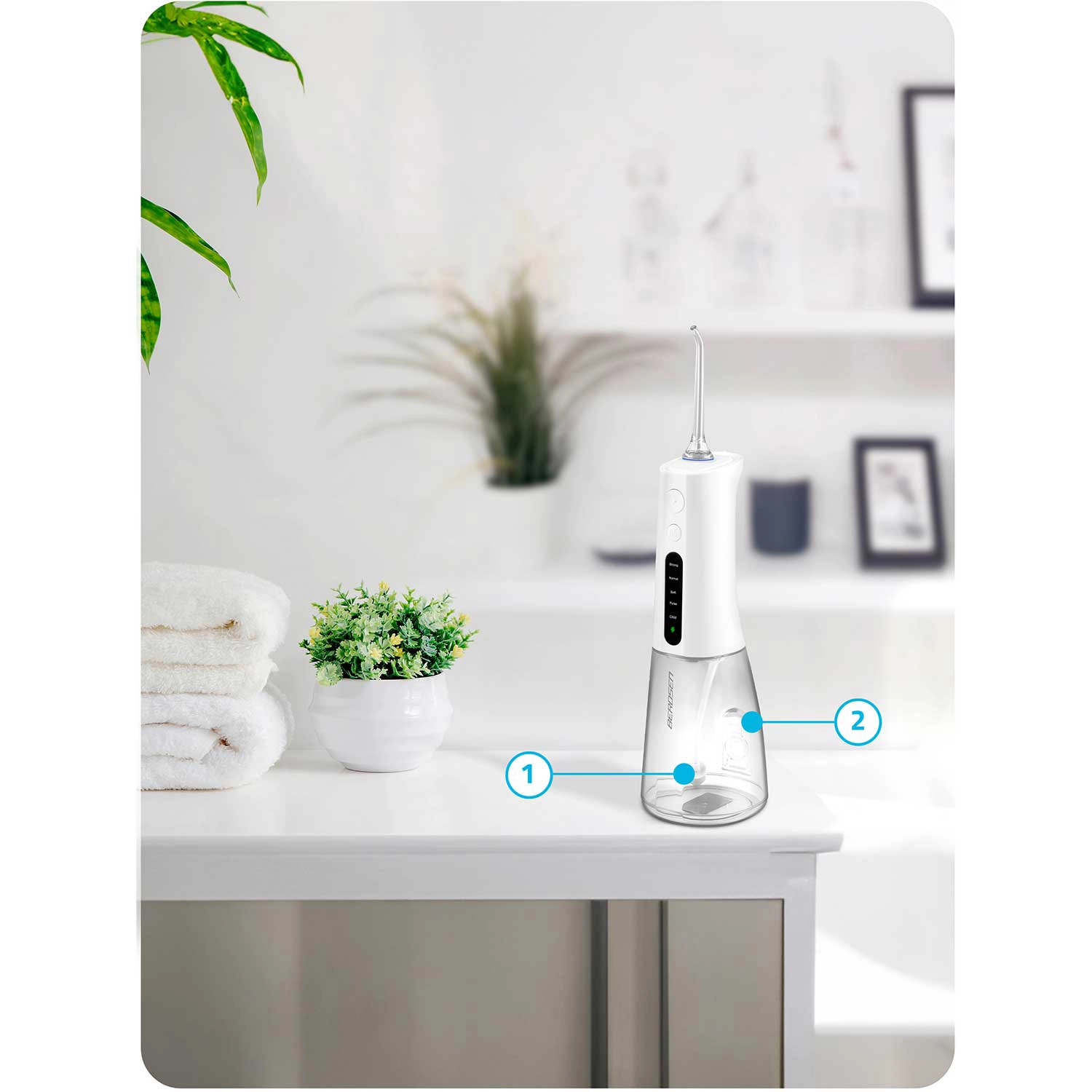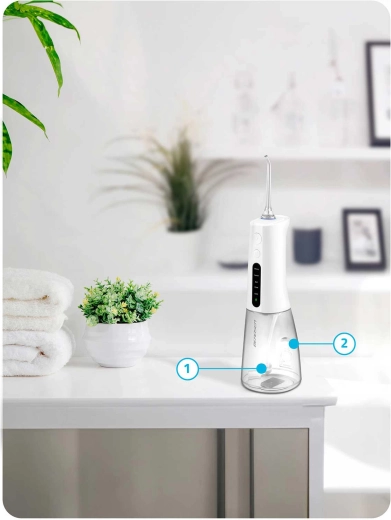 Objem 300 ml vystačí na kompletnú irigáciu bez nutnosti dopĺňania. Ľahké plnenie a priehľadná nádržka pre rýchlu kontrolu hladiny vody.