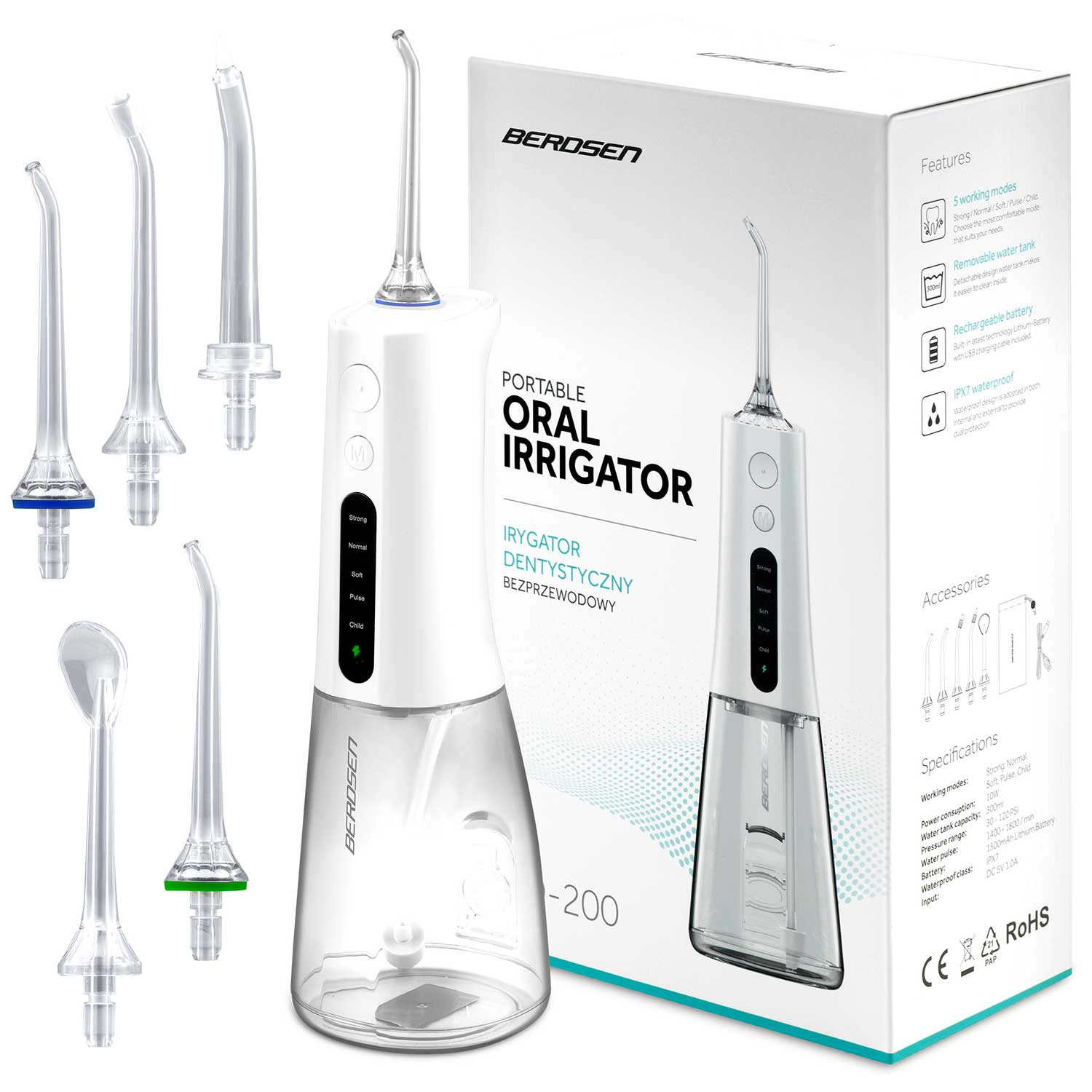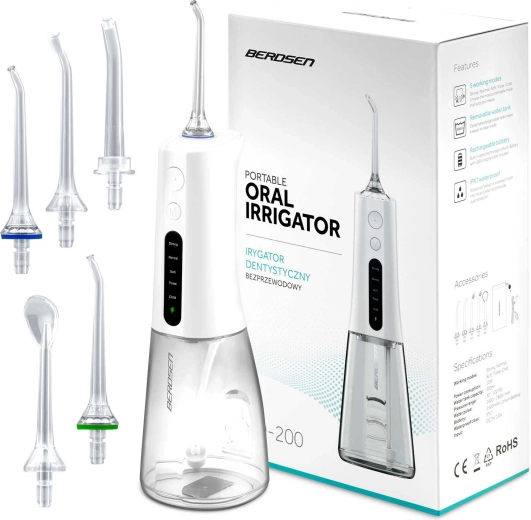 Bezdrôtový irigátor BERDSEN účinne odstraňuje zvyšky jedla, povlak aj baktérie z miest, kam sa bežná kefka nedostane. Je ideálny pre medzizubné priestory, korunky, mostíky, implantáty aj ortodontické aparáty. Štíhly prúd vody s až 1800 pulzmi/min zabezpečuje precíznu hygienu a svieži pocit po celý deň.