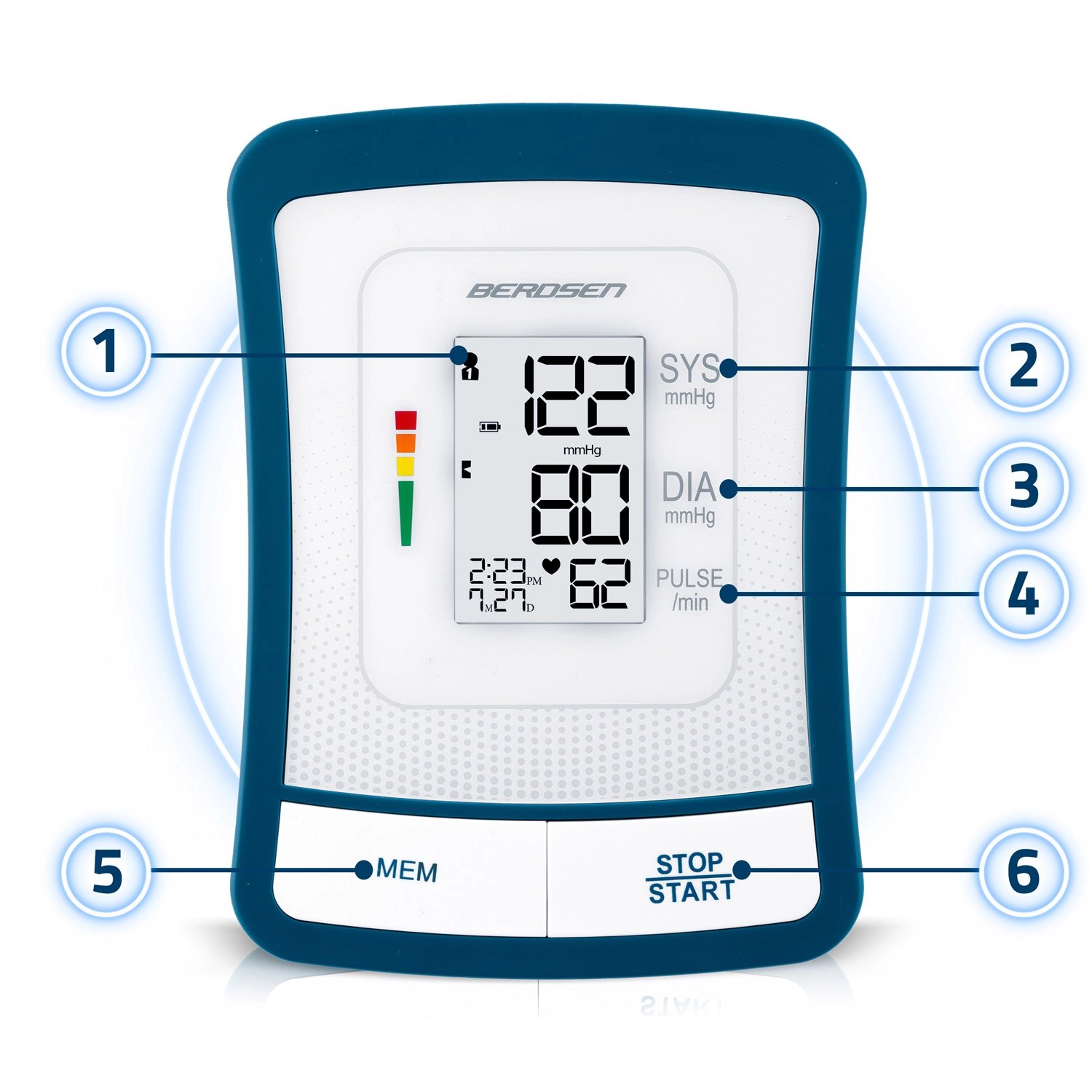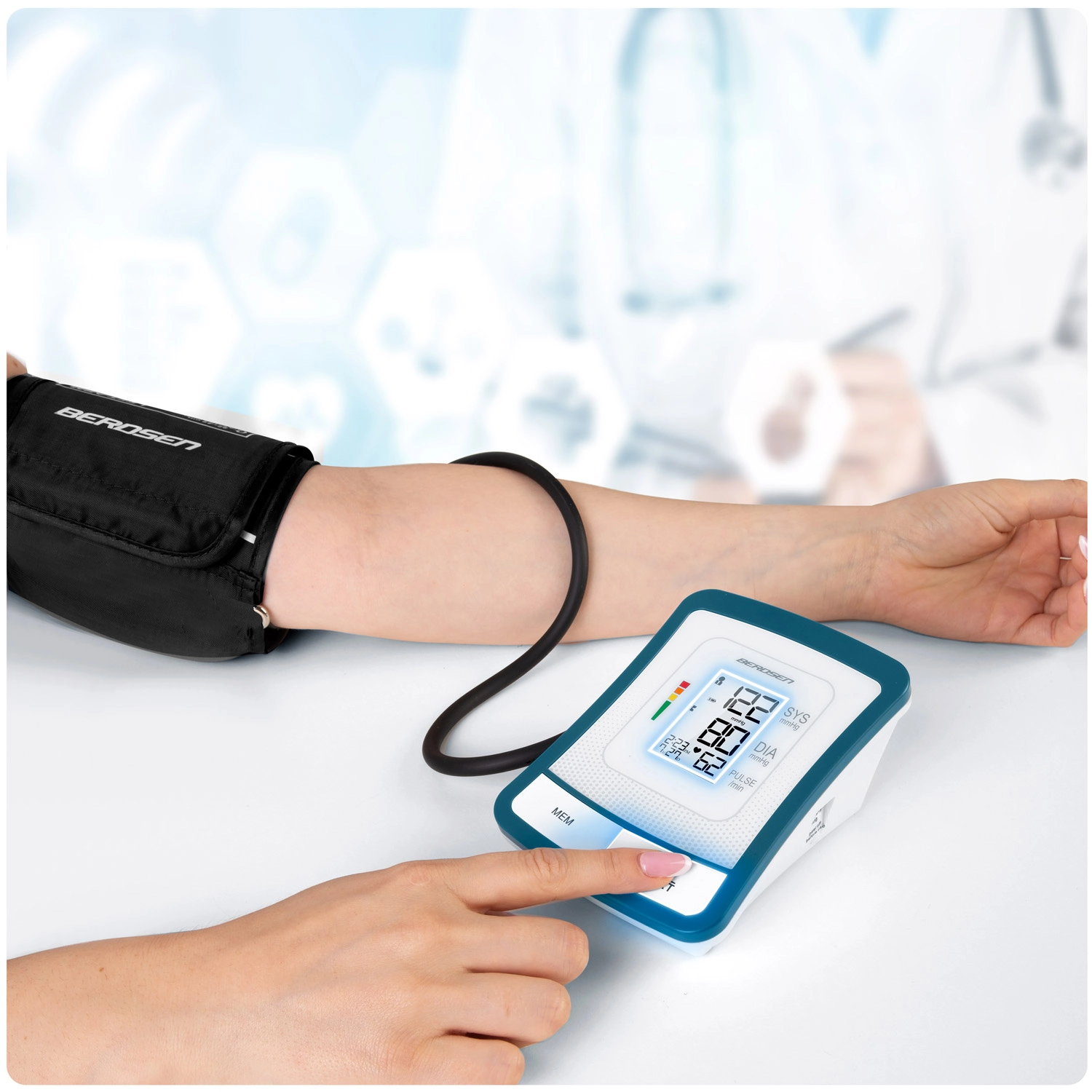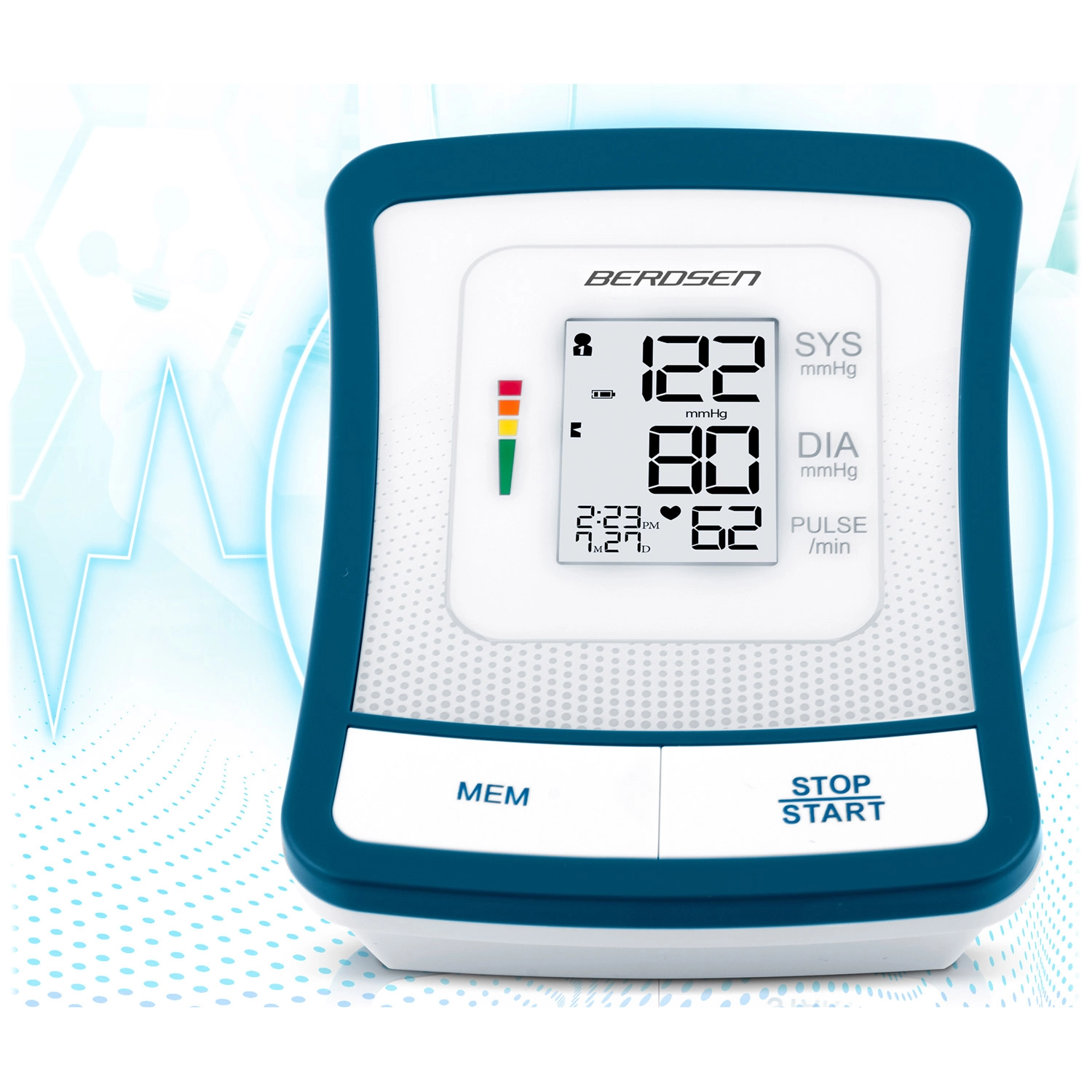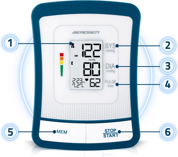 Tlakomer BERDSEN BD-120 je spoľahlivý pomocník na každodennú kontrolu zdravia. Vďaka veľkému LCD displeju s prehľadným zobrazením systoly, diastoly a pulzu uvidíte výsledky ihneď a bez námahy. Prístroj upozorňuje na nepravidelný srdcový rytmus, má zvukovú signalizáciu, automatické vypnutie a indikátor stavu batérie.