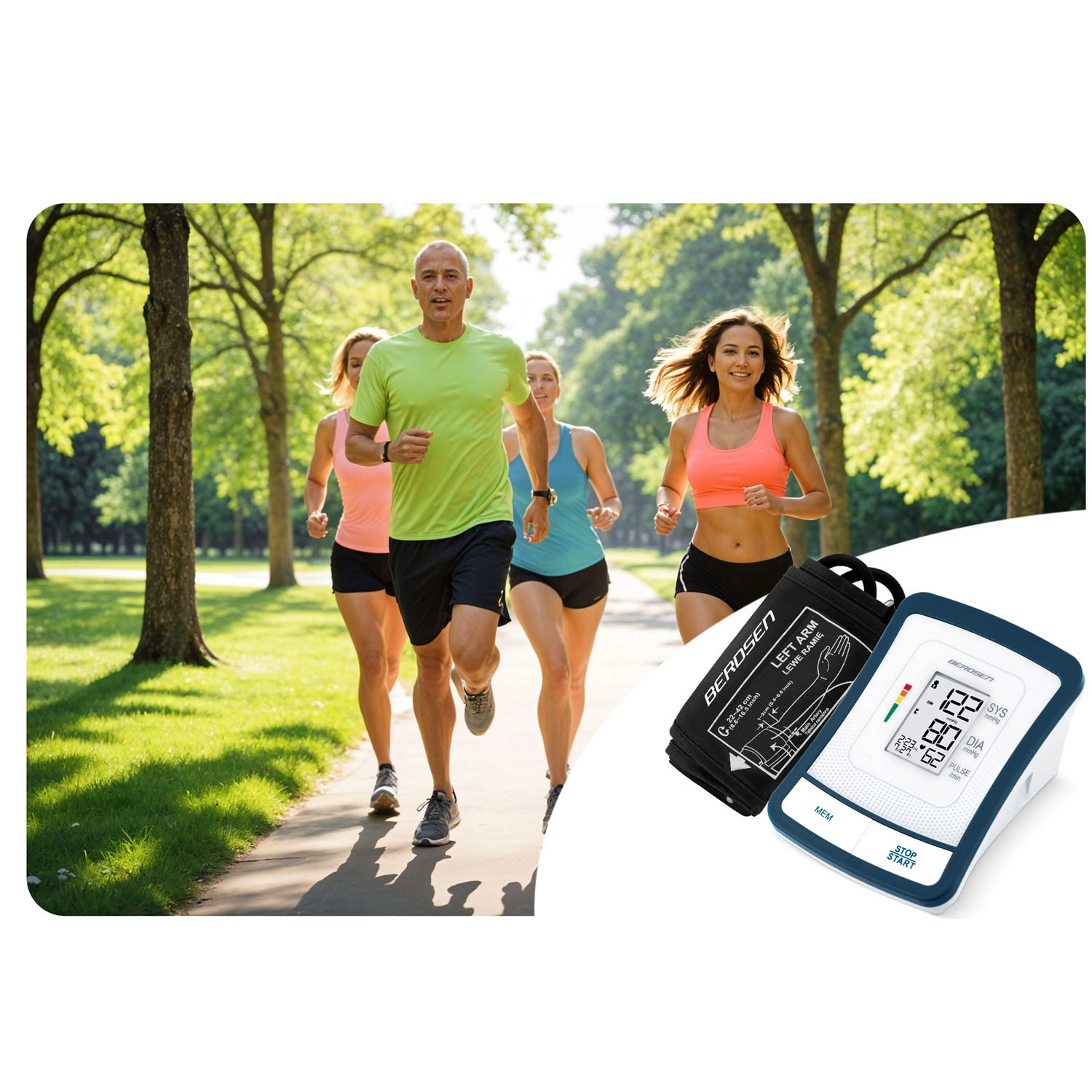 Ovládanie jedným tlačidlom zvládne každý člen rodiny. Nastaviteľná manžeta 22–42 cm je pohodlná a univerzálna. Vďaka pamäti pre 2 používateľské skupiny si jednoducho uložíte a spätne vyvoláte výsledky pomocou tlačidla MEM – ideálne na dlhodobé sledovanie hodnôt a konzultácie s lekárom.