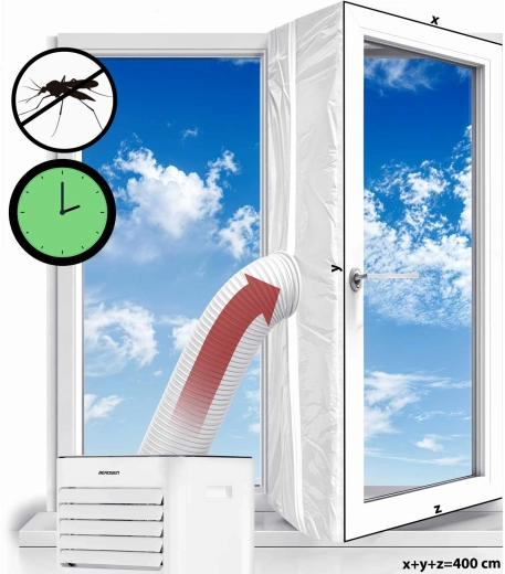 Súčasťou balenia je tesnenie pre výklopné okná až do obvodu 400 cm. Zabraňuje návratu teplého vzduchu a hmyzu a zvyšuje účinnosť chladenia.