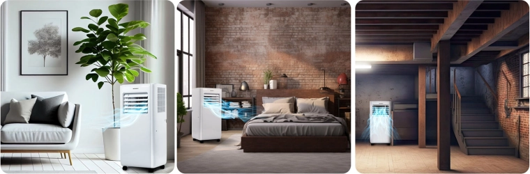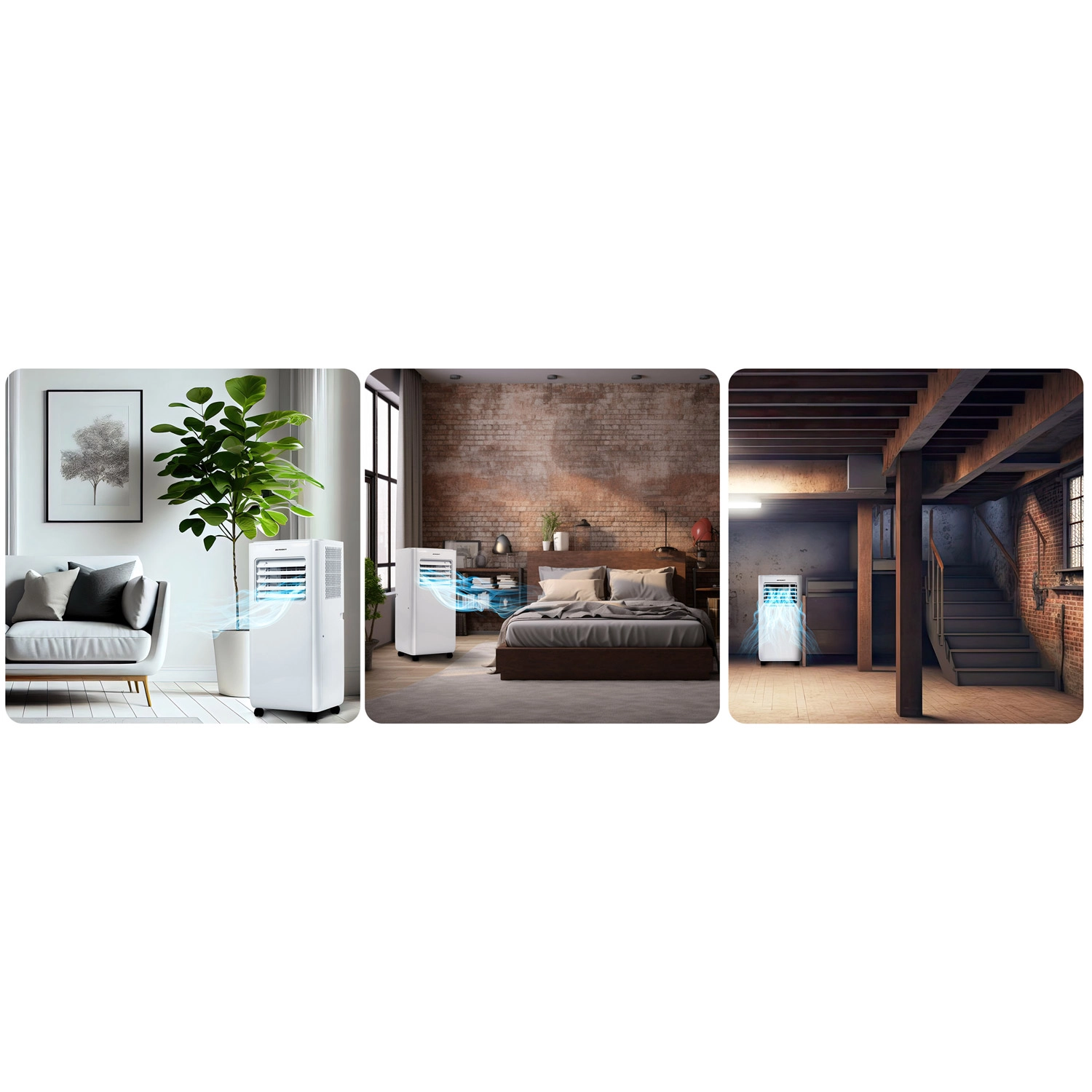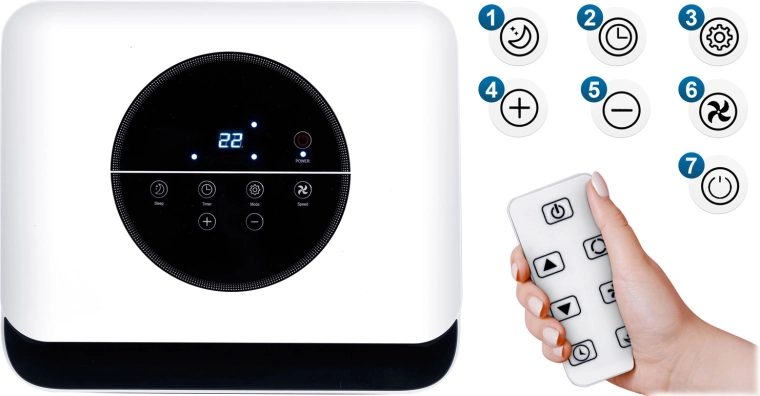 Zariadenie ponúka režimy chladenie, odvlhčovanie (až 26 l/24 h), ventilácia, AUTO a sleep. Ovládať ho môžete cez LCD dotykový panel, dodané diaľkové ovládanie alebo aplikáciu Tuya Smart (Wi‑Fi). Praktické funkcie ako autostart, automatické odmrazovanie, ochrana proti preplneniu nádrže a antibakteriálny filter zvyšujú bezpečnosť aj hygienu prevádzky.
