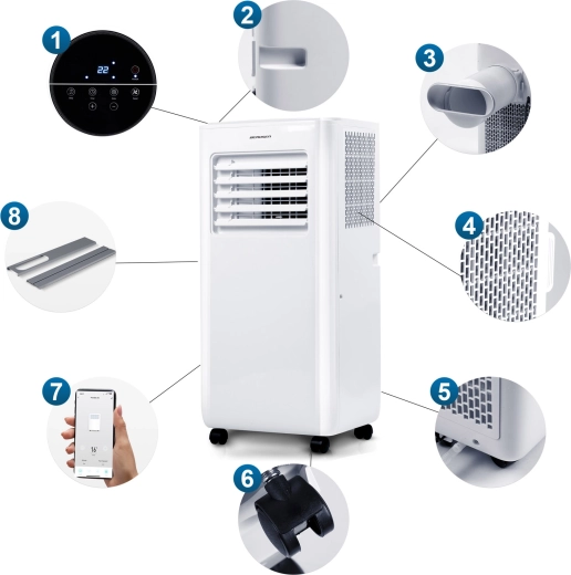 Ekologické chladivo R290 má nízke GWP a nepoškodzuje ozónovú vrstvu. Vďaka kolieskam a madlám klimatizáciu ľahko presuniete, nastaviteľná žalúzia vám umožní nasmerovať prúdenie vzduchu. Priložená hadica a maskovacie prvky uľahčujú odvod horúceho vzduchu mimo miestnosti.
