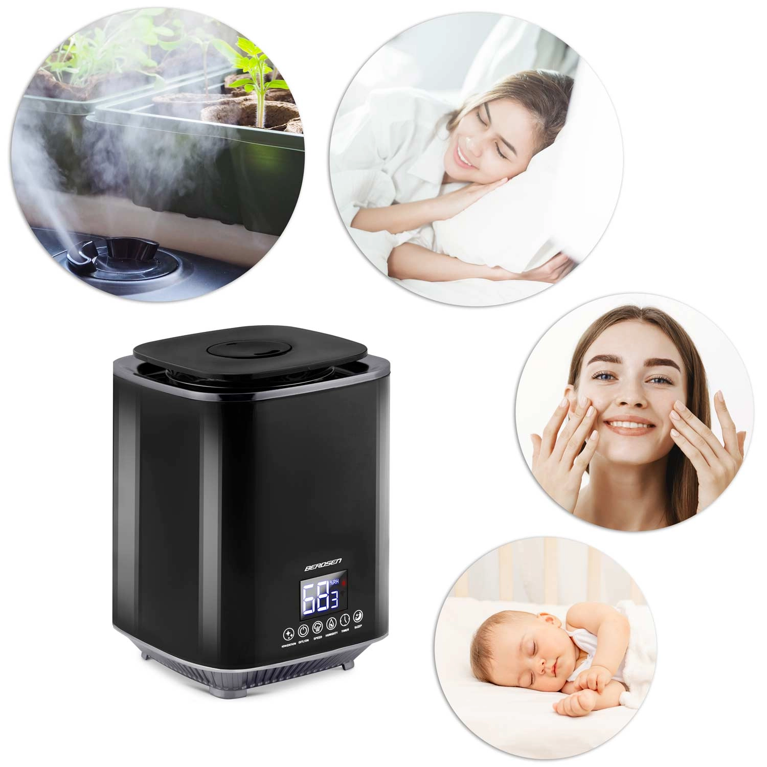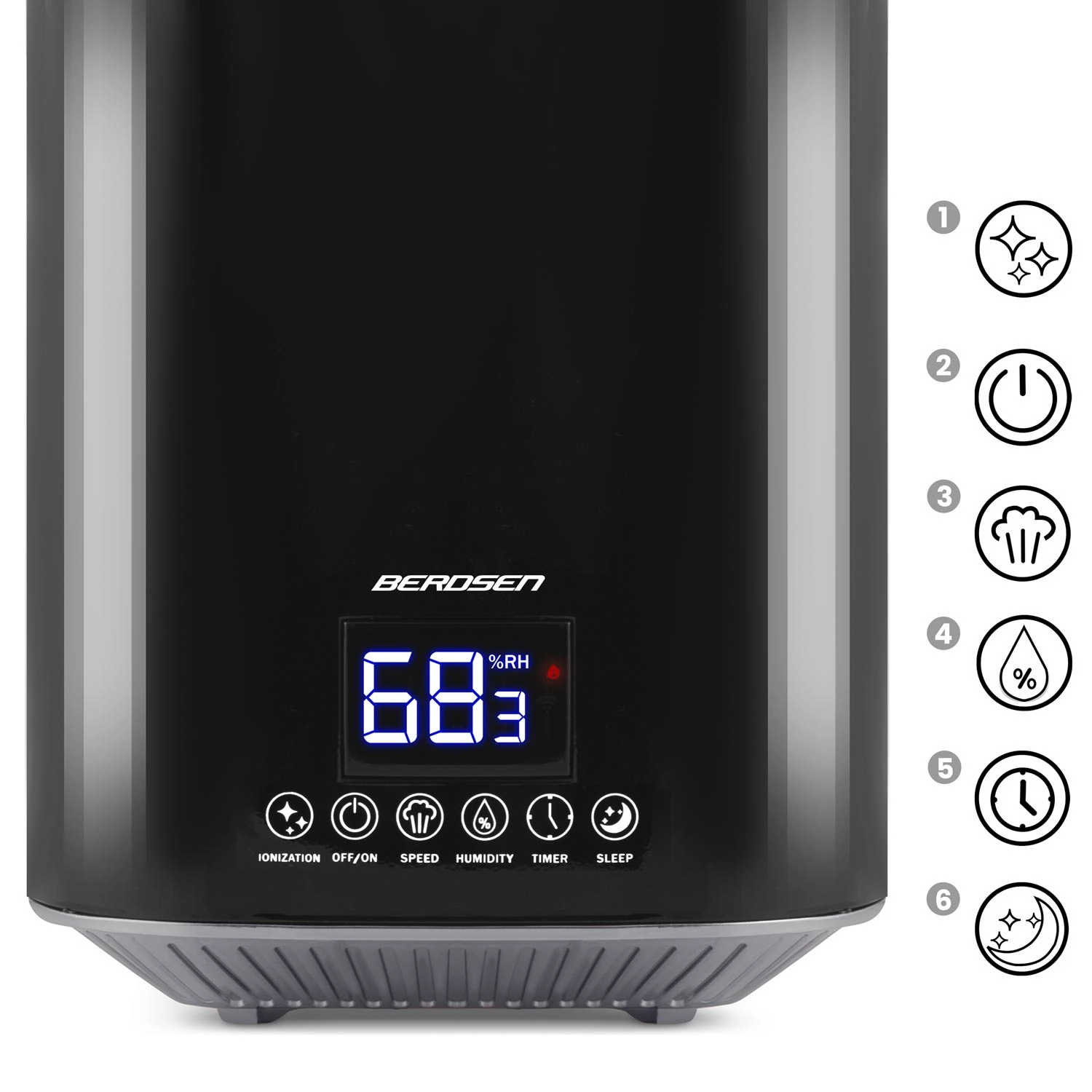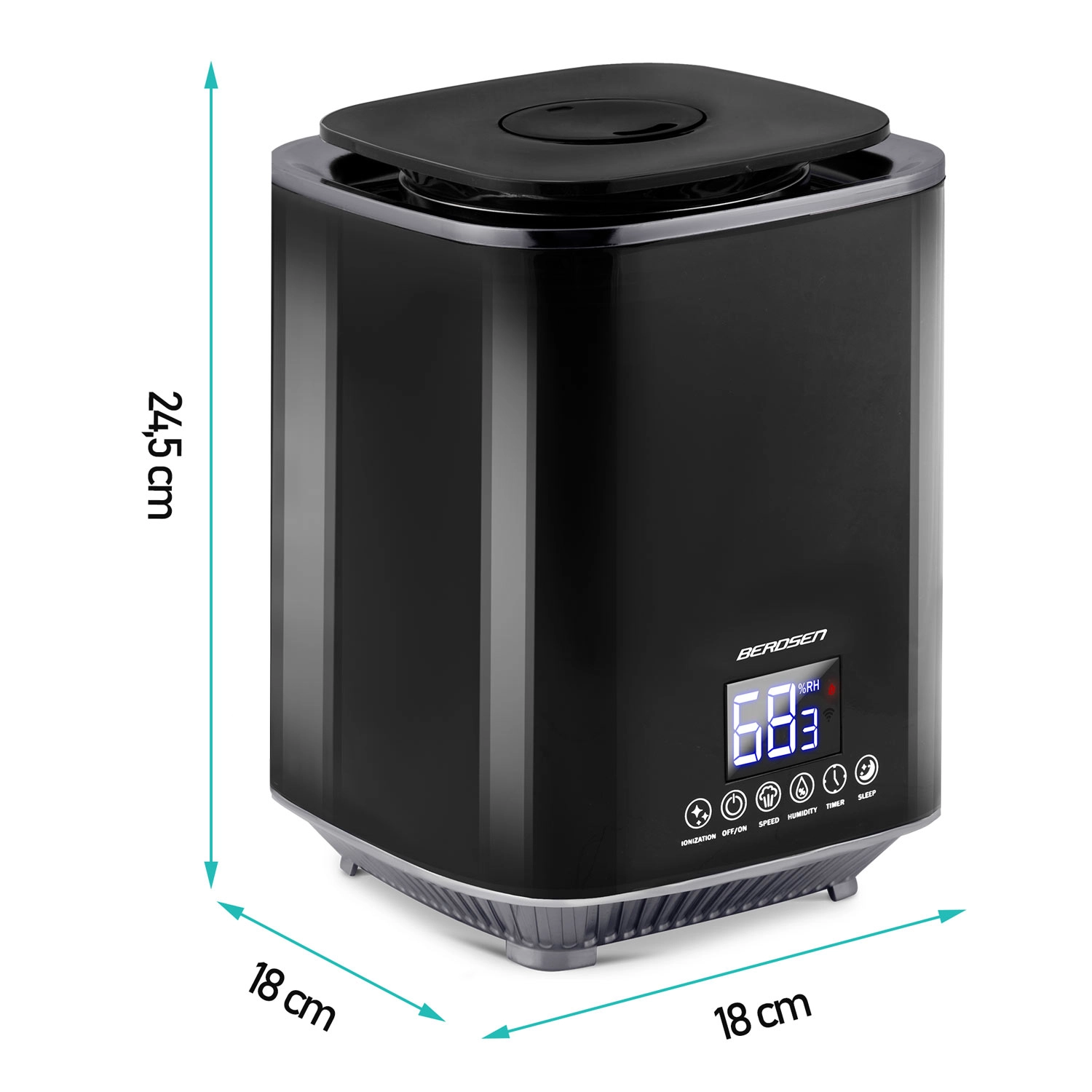 Ultrazvukový zvlhčovač vzduchu BERDSEN s ionizáciou a aromaterapiou, čierny
