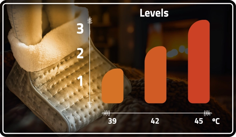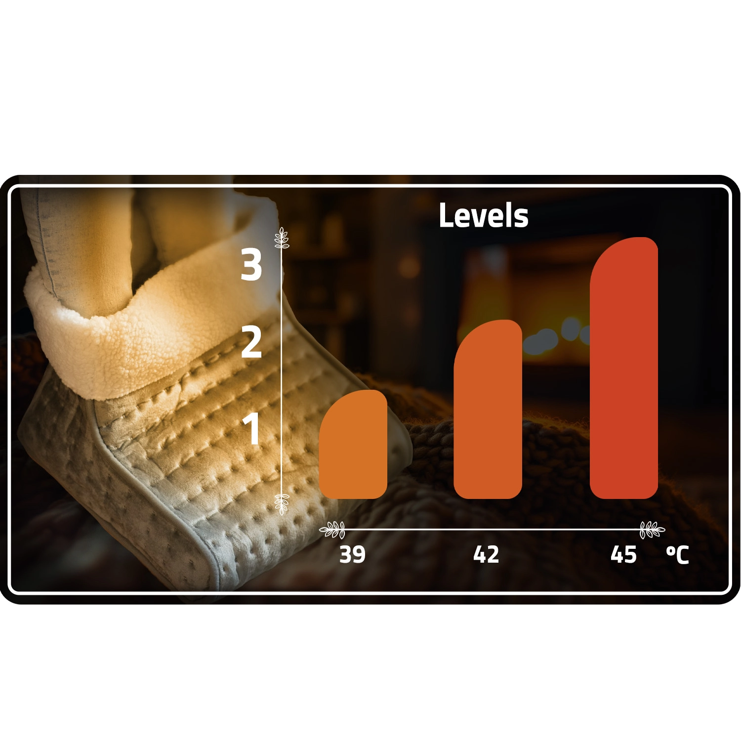 Pre maximálnu bezpečnosť má prístroj automatické vypnutie po 90 minútach a ochranu proti prehriatiu. Vďaka rýchlemu nábehu teploty (cca 2 min) poskytne okamžitú úľavu pre premrznuté nohy, uvoľní napätie a podporí relax po náročnom dni.