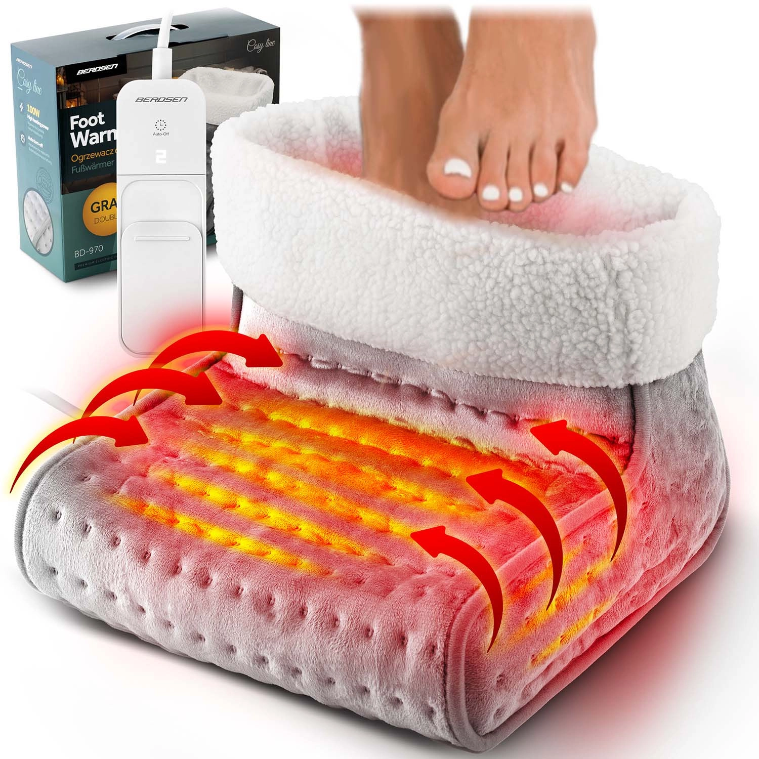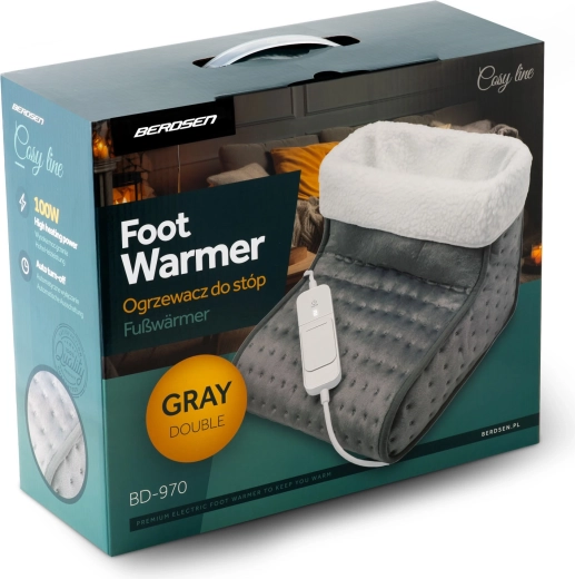 Ohrievač nôh BERDSEN je ideálny spoločník na dlhé zimné večery, prácu pri počítači aj relax pri televízii. Výkonné a rovnomerné tepelné rozloženie zabezpečuje trojvrstvová konštrukcia s hustým plyšom a izolačnou vrstvou, zatiaľ čo priestranný otvor s hebkým lemom pohodlne pojme obe chodidlá. Ovládanie je intuitívne – tri teplotné stupne (39/42/45 °C) jednoducho nastavíte na podsvietenom LCD ovládači.