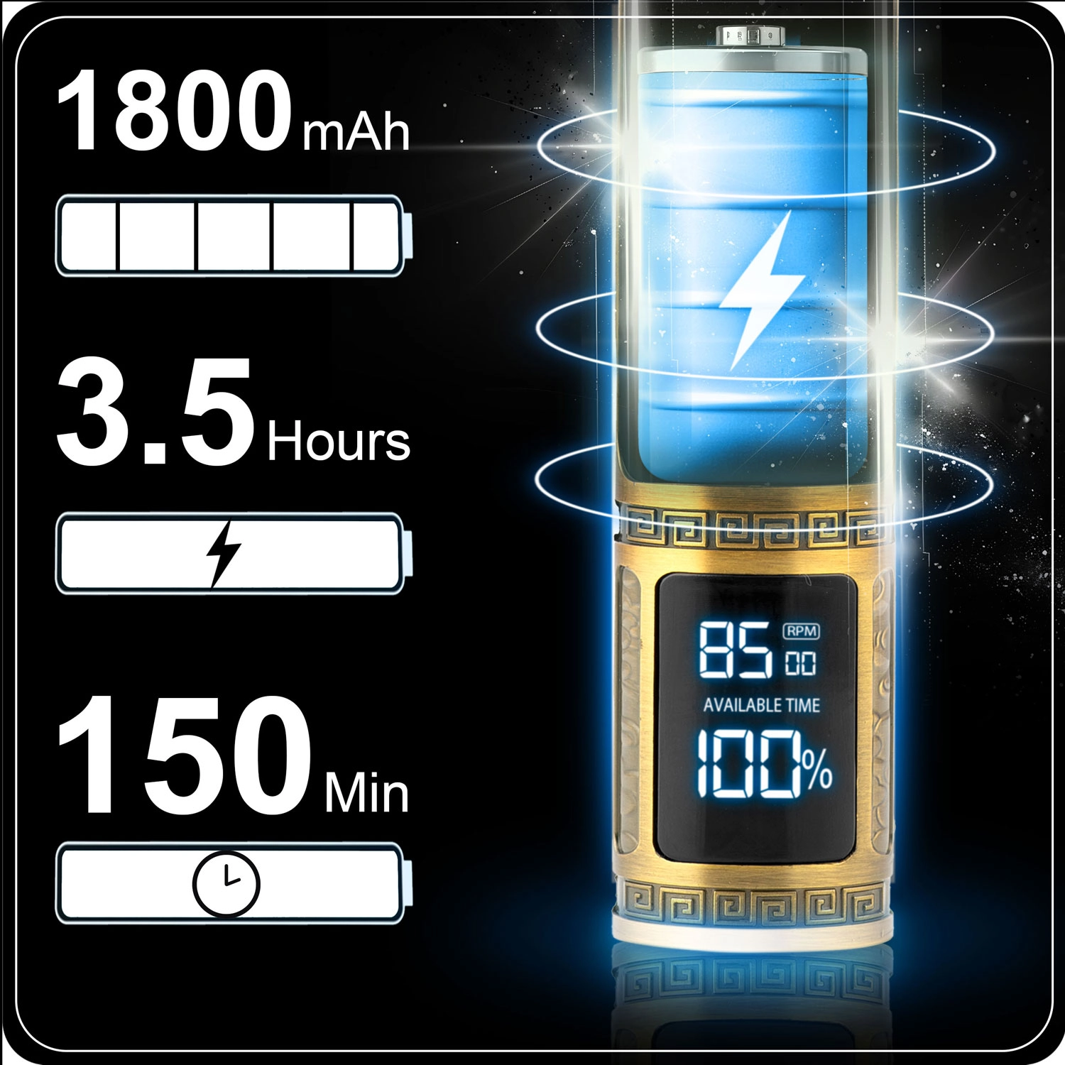 Sledujte zostávajúci čas a stav batérie na prehľadnom LCD. Li‑Ion 1800 mAh poskytne až 2,5 hodiny prevádzky – ideálne na kompletnú úpravu vlasov aj brady.