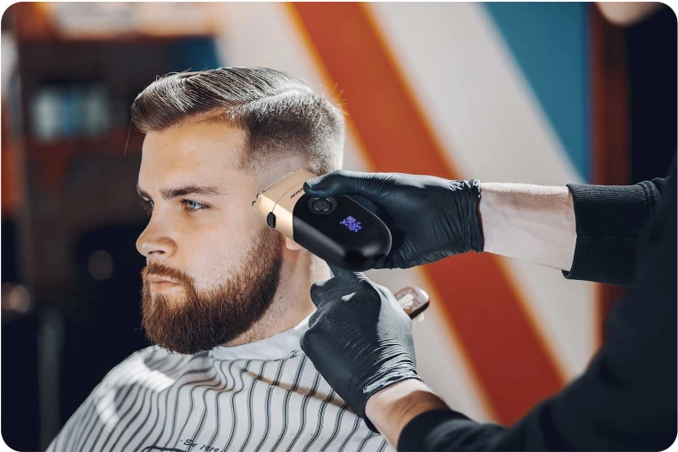 Motor s 6500–7000 RPM a prehľadný LCD ukazovateľ stavu batérie a otáčok pre plnú kontrolu nad holením.