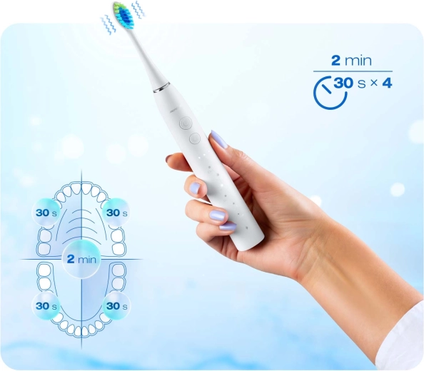 • Inteligentný časovač: 2 minúty s vibráciou každých 30 s na zmenu kvadrantu