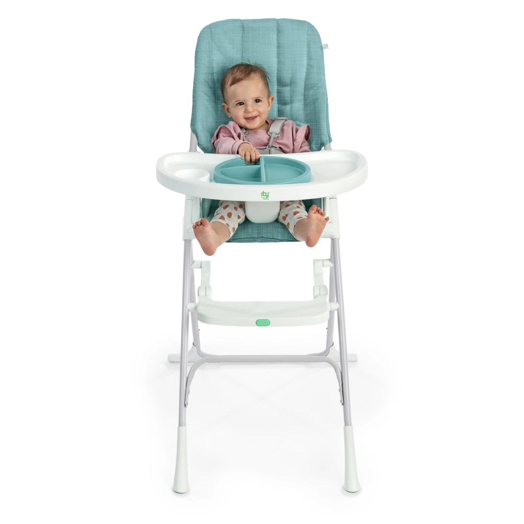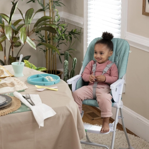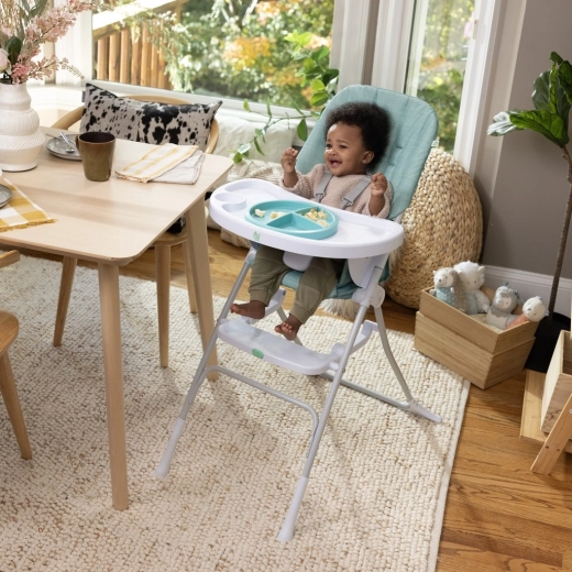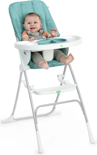 Kompaktná a ľahká jedálenská stolička INGENUITY Sun Valley šetrí miesto a zároveň poskytuje dieťaťu pohodlné a bezpečné stolovanie. Vďaka plochému skladaniu sama stojí, má odnímateľný a umývateľný poťah, 5-bodový bezpečnostný pás a unikátny trojkomorový tanier Twist & Dine s aretáciou a možnosťou ohrevu v mikrovlnke. Nastaviteľný pultík v 3 polohách a stabilná kovová konštrukcia zaistia komfort od 6 mesiacov do 15 kg.