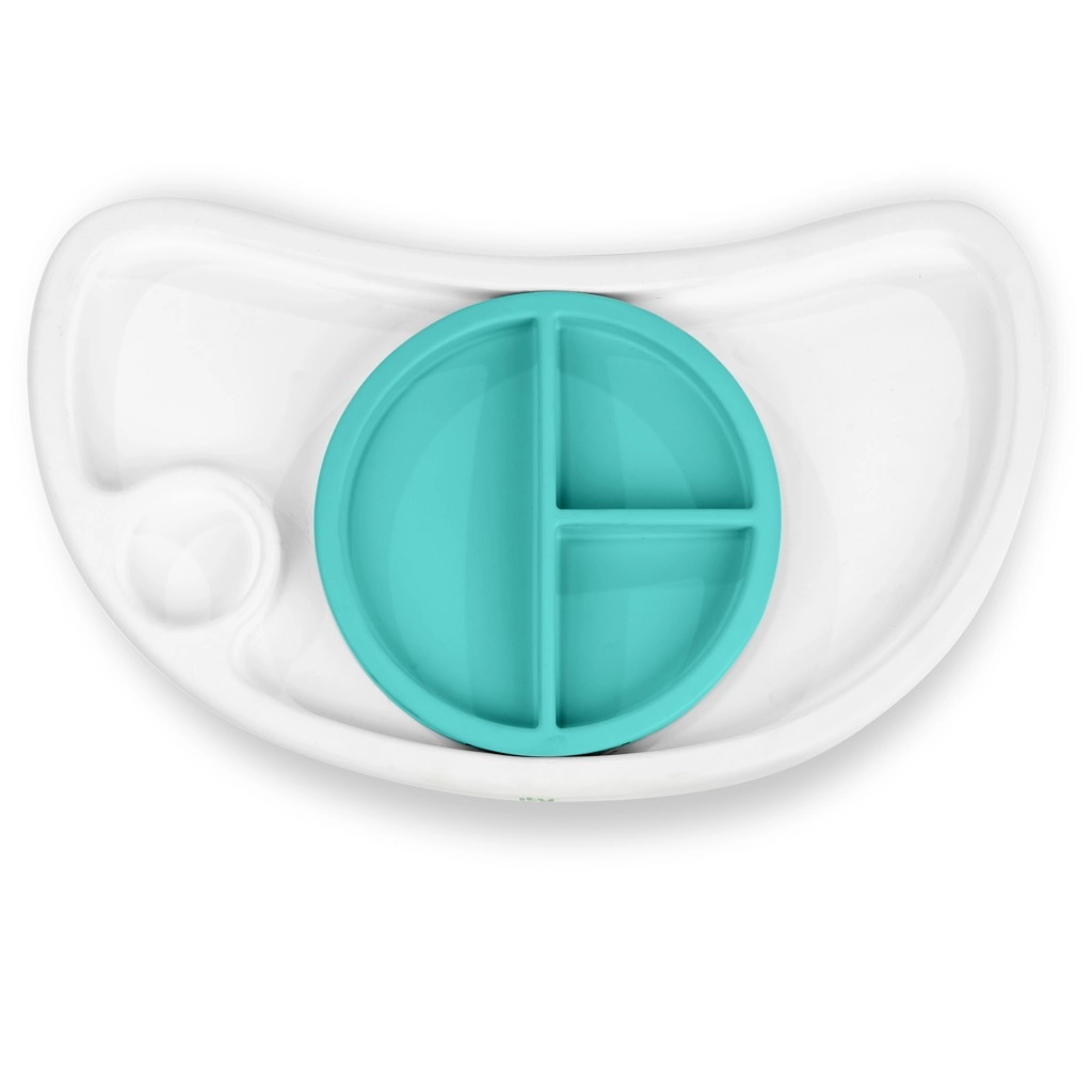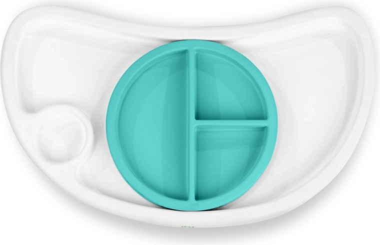 Trojkomorový tanier sa bezpečne uzamkne do pultíka, aby ho dieťa nezhodilo. Je vhodný do mikrovlnky a podporuje porcie aj prehľadné servírovanie.