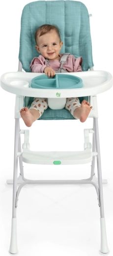 Súčasťou je jedinečný 3-dielny tanier Twist & Dine, ktorý sa pevne zacvakne do podnosu a dieťa ho tak nezhodí na zem. Tanier je vhodný do mikrovlnnej rúry a rozdelené komory podporujú samostatné kŕmenie aj správne porcie. O bezpečie sa starajú 5-bodové pásy a stabilná konštrukcia s protišmykovými koncovkami.